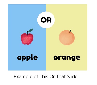 In the This or That icebreaker, you provide two options for students to choose and talk about, like “books or movies?” Icebreaker Spot provides detailed instructions for fostering open conversation, but in an ELT classroom, we can adapt This or That for reviewing vocabulary related to hobbies and interests, and different volumes. For the example below, you can prepare a slide deck or simply list out three to four options, like “apples or oranges?” This icebreaker takes about 10 minutes.