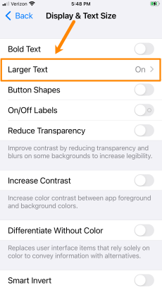 Where to find it: Settings > Accessibility > Display & Text Size > Larger Text