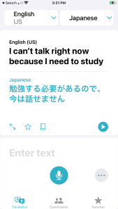 The best part about translate, though, is that it’s now system wide in the iPhone. That means that any text, no matter where it is in your phone, can be tapped and translated. Choosing a single word or a whole selection, then tapping “translate” on the pop-up bar will give students a (pretty accurate, by my informal checking) translation. There are also options to save translations for further exploration in the future.