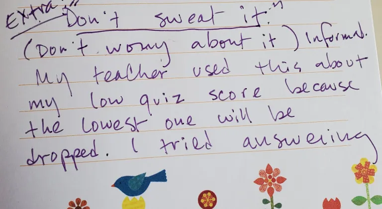 Often, students encounter a useful word or phrase in conversation during the week, after they’ve made their list. For instance, a student’s roommate might use a slang word during a conversation over lunch that seems like a great addition. That word can be added to the list and may even replace another item.