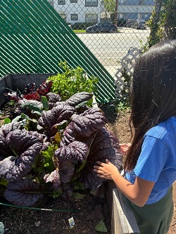 I acknowledge that it isn’t always simple to bring a whole class of students to a community farm, but if possible, it is definitely worth the effort. If that is not possible, I encourage you to bring a farm to them! (See image, right, of a third grade student exploring purple mustard plant using five senses.) Here are a few ways to do this: