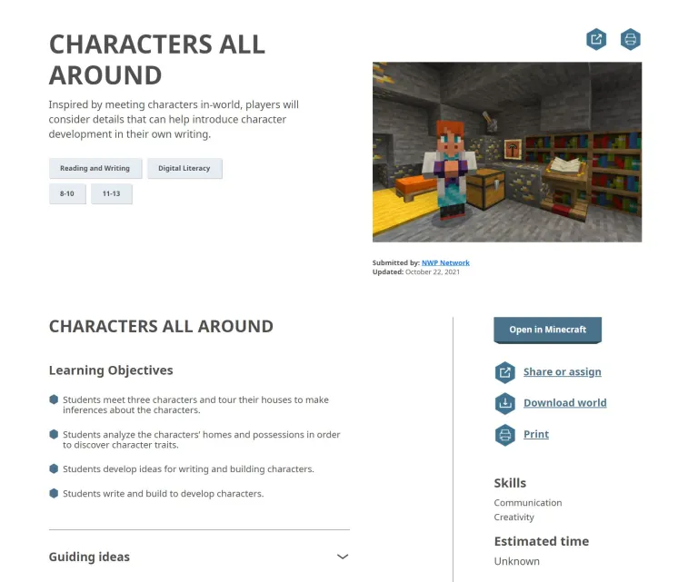 A notable feature of the website is the direct integration it has into the game: Lesson plans can be clicked on and opened directly in the game, making loading and saving the maps easy for even the most novice Minecraft users. Educators can also download maps to be saved and used later, share the Minecraft maps directly with students, or assign the map to students as homework.