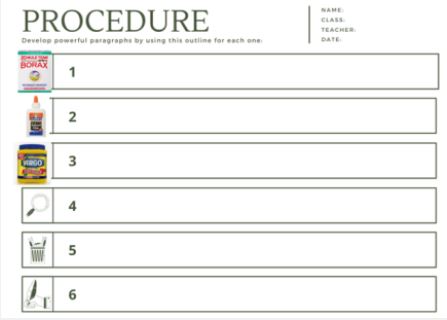 To aid the student in writing the procedure, allow the students to use pictures (provided by you) or to write the word to show the order they followed. See the picture in Figure 1 as an example.