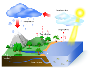 Allow the students to explain what they know about the picture/vocabulary words in small groups, then to the whole group, keeping in mind the characteristics of each level of language proficiency. Then, connects the picture to the unit and explain what they are going to be learning about (in this example, the water cycle, or how water continuously moves from the ground to the atmosphere and back again).