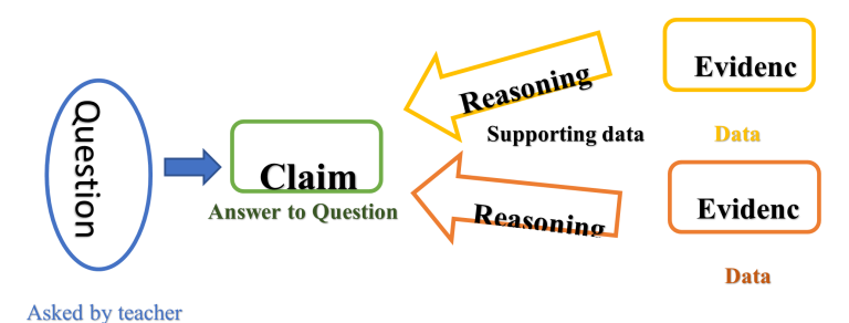 Claim: The students state their opinion or observation about the question based on what the teacher provided as a visual. It is only one sentence; when stating a claim, there is no explanation, reasoning, or evidence at this stage.