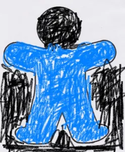 My language is Dhivehi. I use it for most things. That’s why I have coloured mostly Dhivehi. But when I am in school, I have to think and write in English. So I have coloured part of my head red and one hand also red.