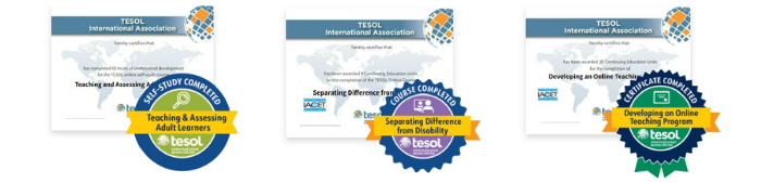 TESOL provides open digital badges to all online course participants. When you complete any of our facilitated or self-study courses online, you will receive the link to your permanent digital credential upon completing the course feedback survey.